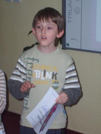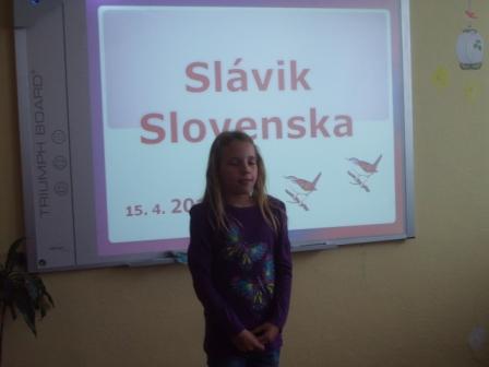 V piatok sme mali v škole peknú akciu. Vypočuli sme si 20 nádejných spevákov. Medzi nimi boli aj deti z našej triedy. Anetka Čimborová, Maťko Podkamenský a Lukáško Bezák. Výkony všetkých troch boli výborné. Zvlášť gratulujeme Lukáškovi Bezákovi, ktorý získal 3. miesto. Ďakujeme aj pani učiteľke Ivanke Honzovej, ktorá deti učí hudobnú výchovu a a venovala sa im pri nácviku piesní.